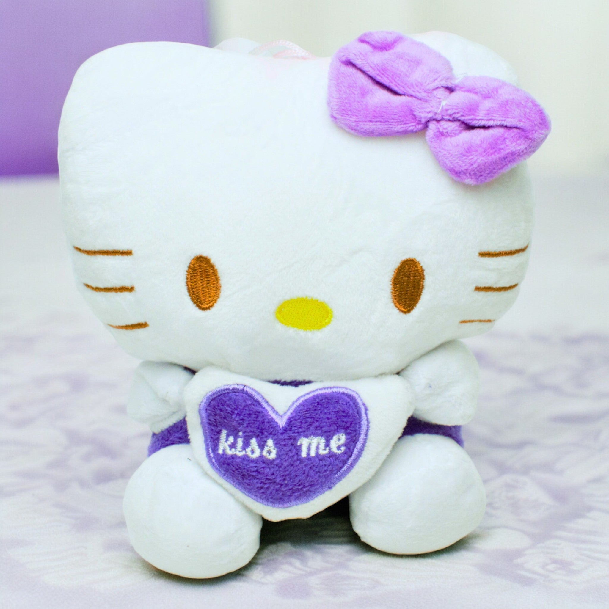 White and Purple Heard Stuff Toy Bear